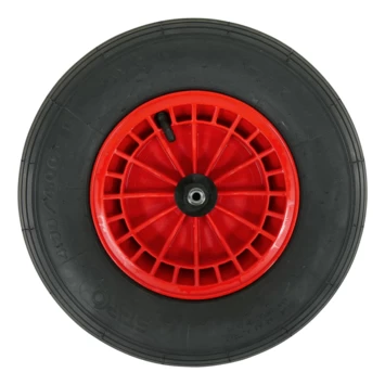 Het Altrad Fort Kruiwagenwiel Rood 13×2 cm is een luchtbandwiel waarmee jouw kruiwagen met groot gemak zware ladingen kan vervoeren. Dankzij het stevige design kan het wiel tot wel 150 kg dragen. Het luchtbandwiel heeft een afmeting van 40×10 cm, een oranje kunststof velg en 2ply band. Voor duurzaam gebruik is het wiel rollager vetgesmeerd. Bovendien is het wiel PAK-vrij en voorzien van een Reach certificaat. PAK-vrij wil zeggen dat er geen kankerverwekkende stoffen in het rubber zitten. Kortom, haal het maximale uit je kruiwagen met het Altrad Fort kruiwagenwiel.