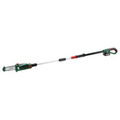 De Bosch accu hoogsnoeier UniversalChain 18 is ideaal voor het snoeien van moeilijk bereikbare takken. Door de verstelbare kop en telescoopstang van 2,1 tot 2,6 meter hoog, zaagt deze machine moeiteloos door zelfs de hoogste takken. De tipbeschermer en bumperspike zorgen voor een betere controle. De ketingzaag werkt op een 18V / 2,5Ah Lithium-Ion accu, waardoor u gelijk aan de slag kunt zonder het gebruik van verlengsnoeren. Door het ergonomische, goed gebalanceerde en lichtgewicht design werkt u probleemloos en langdurig door zonder belasting op de armen en schouders. Met het zwaard van 20 cm snoeit u takken met een dikte tot 15 cm. Door de oliepeilindicatie en automatische kettingsmering wordt er voorkomen dat uw machine droogloopt.