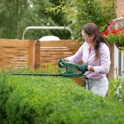 De heggenschaar EasyHedgeCut 55 van Bosch is gemakkelijk te hanteren door het lichte gewicht. Zo kunt u comfortabel werken in elke positie. Dankzij de hogesnelheidsmotor, de meslengte van 55 cm en de mesafstand van 16 mm levert de heggenschaar AHS 55 uitstekende prestaties. Het gereedschap is ideaal voor het snoeien van kleine heggen.Â
