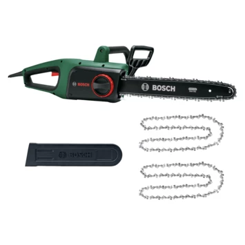 De kettingzaag UniversalChain 35 is een lichte en ergonomisch ontworpen kettingzaag voor optimaal gebruikersgemak. De krachtige 1800W motor en een kettingsnelheid van 12 m/s zorgen voor goede zaagprestaties. De ketting is eenvoudig te spannen en onderhouden zonder extra gereedschap, dankzij het Bosch SDS-systeem. Daarnaast krijg je er een tweede ketting bij. Het ruime oliereservoir aan de zijkant garandeert het gemakkelijk bijvullen van het automatische kettingsmeersysteem. De terugslagrem met een volledige kettingstop zorgt voor veiligheid. Deze kettingzaag is gemakkelijk te gebruiken en wendbaar, zodat hij ideaal is voor het zagen van houtblokken, takken en kleine tot middelgrote bomen.