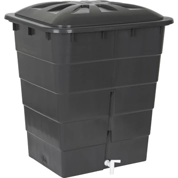 Deze praktische Garantia Regenton rechthoekig grijs 300 Liter heeft zoals de naam al zegt een handige vierkantige vorm en een inhoud van maar liefst 300 liter. Daar kun je aardig wat planten mee goedkoop water geven. De ton heeft een kindveilige deksel en een witte aftapkraan die je ook op een Gardena aan kunt sluiten. Deze grijze vierkante regenton is mooi compact en kan gemakkelijk tegen een muur geplaatst worden. De regenton heeft een breedte van 80 centimeter, een hoogte van 92 centimeter en een inhoud van 300 liter. Het materiaal van de waterton is vrijwel onverwoestbaar. Vorst, regen en dergelijke weersomstandigheden hebben geen vat op deze regenton, wel dien je de regenton leeg te maken bij vorstgevaar. Daarnaast bestaat de ton voor 75% uit gerecycled plastic en beschikt over 10 jaar fabrieksgarantie. Plaats voor extra hoogte onder de regenton een regenton voet zodat je gemakkelijk met een emmer het water uit de kraan kan halen.