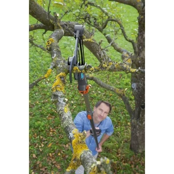 De Gardena combisystem boomschaar met 5-voudige transmissie is bij uitstek geschikt voor het snoeien van takken in hoge bomen. In combinatie met een Gardena combisystem telescoopsteel, kunnen takken gemakkelijk worden gesnoeid vanaf de grond en zonder ladder. De telescoopsteel is los verkrijgbaar, in diverse lengtes.