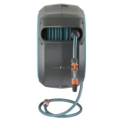 De Gardena wandslangenbox roll-up automatic slang 35m laat u comfortabel en eenvoudig besproeien. Na gebruik is een korte ruk genoeg om de slang zichzelf weer op te laten rollen. Bovendien is de wandslangenbox roll-up uitgerust met een geïntegreerde slanggeleider, wat het verdraaien of verstrengelen van de slang voorkomt. De 13mm dikke slang stopt bij uittrekken met korte intervallen van 50cm. En door de hoge waterdoorstroom werkt de sproeier optimaal. Na gebruik plaatst u de aansluitslang op de druppelstop om het weglekken van water te voorkomen. Wilt u de box opbergen? Dan tilt u hem aan de ergonomisch gevormde handgreep eenvoudig uit de beugel. Naast de slang van 35 meter vindt u ook een 1.5 meter lange aansluitslang, traploos verstelbare tuinspuit en de benodigde original Gardena system onderdelen in de doos. Wanneer u deze wandslangenbox heeft opgehangen met de meegeleverde schroeven en pluggen ervaart u zijn 180 graden draaibare vrijheid. Inclusief wandhouder.
