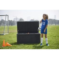 De kussenbox Borneo van Keter is de ideale oplossing om snel en gemakkelijk spullen op te bergen. Met zijn wicker design is deze opbergbox niet alleen zeer praktisch maar ook erg stijlvol waardoor je de box zowel binnen als buiten kan gebruiken. Met zijn grote opslagcapaciteit van 400 liter, is deze berging uitermate geschikt voor tuinkussens, speelgoed of andere tuinspullen. Dankzij de 2 gasveren kan je het deksel gedempt openen en sluiten. Daarnaast kan je deze opbergbox ook gebruiken als bankje. Dankzij het extra verstevigd deksel kunnen er gemakkelijk twee mensen zitten op de Borneo opbergbox.
