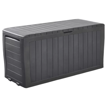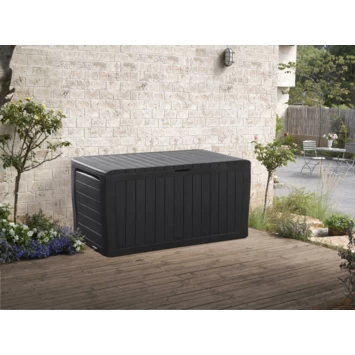 De veelzijdige Marvel Plus opbergbox voor je tuin biedt een eigentijdse opbergoplossing voor buiten. Gemaakt van duurzaam en weerbestendig kunststof is het ideaal om je kussens, speelgoed en barbecue spullen geventileerd en droog te houden. Het biedt ook plaats aan twee volwassene, met een deksel dat tot 220 kg kan weerstaan, waardoor het een geweldig stuk tuinmeubilair is voor het ontvangen van gasten. Dankzij de ingebouwde handvatten en wielen kan je de box gemakkelijk verplaatsen. Deze is ook afsluitbaar en uiterst eenvoudig in elkaar te zetten.
