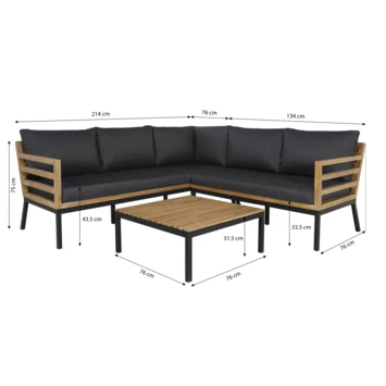 In een loungeset hangen wordt nog leuker buiten! De loungeset Luuk bestaat uit een hoekbank en een bijzettafeltje. Met zijn frame uit zwart aluminium en acacia hout haal je een moderne, maar toch gezellige loungeset in huis. Nu alleen nog de zon erbij en je bent vertrokken!