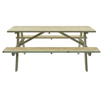 Deze houten picknicktafel past in vrijwel iedere tuin en is geschikt voor veel verschillende gelegenheden. De picknicktafel 77x180x167cm is gemaakt van geïmpregneerd hout, wat een goede basisbescherming biedt tegen weerselementen. Wil je je picknicktafel een leuk kleurtje geven? Dat kan! Want deze picknicktafel is prima overschilderbaar. Bovendien is de picknicktafel zeer stevig en heeft hij een robuuste uitstraling.