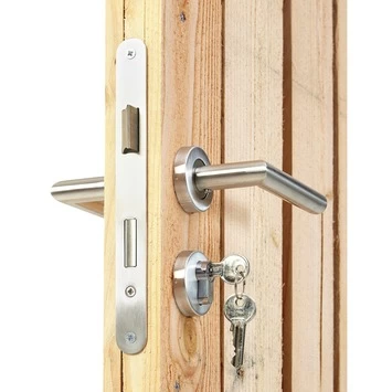 Heb je een houtbetonschutting van douglashout waar je een passende poort bij zoekt? Dan zit je met deze poort voor poort voor houtbetonschutting Douglas, breedte 110 cm rechtsdraaiend helemaal goed. Met een breedte van 110cm, waarvan de doorloopmaat ca. 100cm breed is, kun je door deze doorgang prima met een fiets, scooter of kruiwagen lopen. De poort is gemaakt van douglashout, een sterke houtsoort die je niet hoeft te impregneren, beitsen of verven. De poort heeft een metalen frame en wordt geleverd met een aluminium cilinderslot, metalen frame, hengen en verstelbare duimen, zodat je de deur eenvoudig zelf vast kunt zetten. De poort is rechtsdraaiend en heeft de scharnieren rechts zitten, wat inhoudt dat de poort vanuit de tuin gezien naar binnen toe opent.