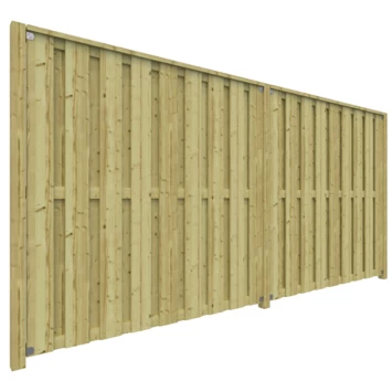 De schutting Royal is een rechte houten schutting. Het tuinscherm is gemaakt van grenenhout. Door het impregneren van het hout is deze schutting beter beschermd tegen weersomstandigheden. Omdat het hout al behandeld is met impregneermiddel hoeft deze niet direct behandeld te worden met beits. Ons advies is om deze na 5 jaar te behandelen met impregneermiddel of beits.De schutting is gemaakt van 17 geschaafde planken van 15mm dik en 14cm breed, waardoor doorkijken haast wordt voorkomen. Deze schutting geeft dan ook veel privacy. De afmetingen van het tuinscherm zijn 180x180cm en de planken zijn bevestigd met RVS schroeven. De schutting royal heeft een verwachte levensduur van ongeveer 10 jaar. Het startpakket is ook te verkrijgen in de antracieten versie en een Douglas hout variant. De tuinpalen zijn ook grenenhout geïmpregneerd met een kopmaat van ca. 6,8×6,8 cm van 270 cm lang.