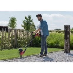 De 20V Max (18 V) SKIL 0240 is een krachtige accugrastrimmer met een werkbreedte van 30 cm voor moeiteloos trimmen en randen snijden. Door de automatische draadtoevoer hoeft de draad niet meer met de hand te worden toegevoerd en dit maakt het mogelijk om buitensporige grasgroei dichtbij muren, hekken en bloembedden zonder onderbrekingen te trimmen of gewoon de randen van uw gazon bij te werken. De trimmerkop kan eenvoudig in verschillende standen worden gedraaid, wat praktisch is bij het werken op moeilijk bereikbare plekken. U kunt ook gemakkelijk wisselen tussen randen snijden en trimmen dankzij de verticale randsnijknop. Om zo comfortabel mogelijk te werken heeft deze accugrastrimmer een verstelbare telescoopsteel evenals een verstelbare voorhandgreep, zodat elke gebruiker de juiste werkhouding kan vinden. Bovendien kan dankzij de plantbeschermer heel nauwkeurig worden getrimd, zodat men zich over het beschadigen van planten en bloemen geen zorgen hoeft te maken. Dankzij het exclusieve Easy Storage-ontwerp van SKIL neemt dit gereedschap na gebruik bijna geen ruimte in beslag. De SKIL 0240 CA wordt geleverd met een draadspoelsysteem en een Easy Storage-haak. De accu wordt niet meegeleverd.