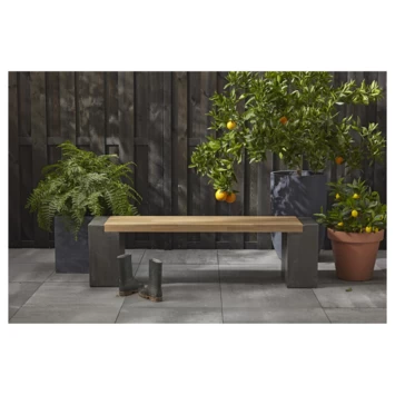 De Tuinbank Kubu is een ideale bank om te plaatsen voor of onder een raam, op een vlonder of op een uitzichtplek. De bank is geschikt voor 2 personen en gemaakt van hout. De cement-look dragers maken dat de tuinbank een robuuste uitstraling heeft. Desondanks is de Tuinbank Kubu makkelijk te combineren met andere tuinmeubelen, omdat de bank natuurlijke kleuren bevat.